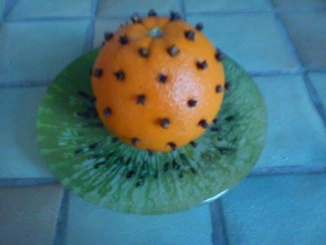 Aujourd’hui un petit truc de grand-mère au cas où des mites auraient décidé de squater votre maison. Prendre des oranges et les piquer de clous de girofle comme sur la photo et les mettre dans les placards alimentaires et quelques unes sur une coupelle dans la cuisine. Ces petits clous s’enfoncent très bien dans la peau de l’orange et au contact de la chair, ils restent humides et dégagent leur arôme puissant que les mites craignent …… elles n’ont plus qu’à faire leurs valises !