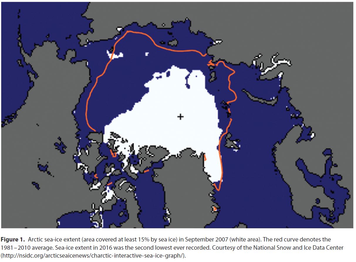 Car il ne faut pas penser que la banquise se forme simplement en hiver et fond en été. Avec le réchauffement climatique, la glace se forme plus lentement dans les périodes les plus froides, mais fond rapidement en été. La banquise devient plus fine, plus fragile, et sa dislocation en morceaux accélère sa fonte. De plus, en fondant, la glace libère du méthane qui est, tout comme le CO2, un gaz à effet de serre réchauffant l’atmosphère. En 2016, la banquise a atteint la superficie la plus basse de son histoire en période hivernale.